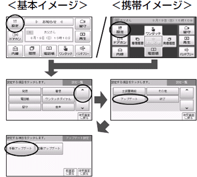 • ソフトウェア(ファームウェア)のアップデートをする前に下記手順「UD-標準電話機ソフトウェア(ファームウェア)バージョンの確認方法」で、本商品ソフトウェア(ファームウェア)のバージョンをご確認ください。