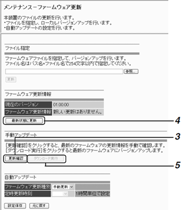 「ファームウェア更新情報」の「最新状態に更新」をクリックするごとに、「ファームウェア更新情報」の手動ダウンロードの状態が更新表示されます。 |