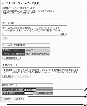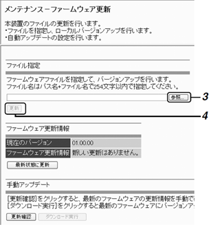 メニューの「メンテナンス情報」−「ファームウェア更新」をクリックする |