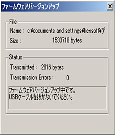 バージョンアップ中にUSBケーブルを抜いたり本商品の電源を切ったりしないでください。