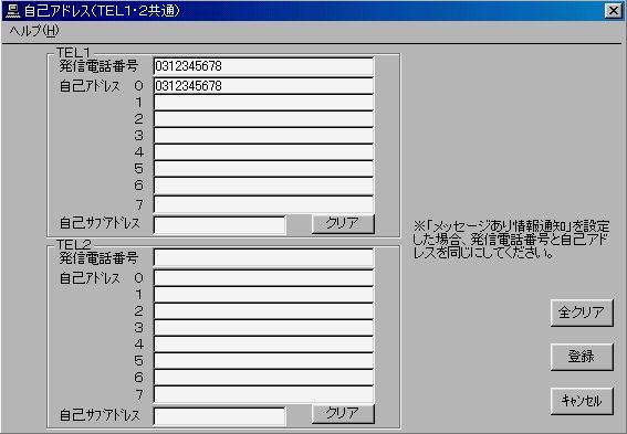 ・自己アドレス(TEL1・2共通)画面