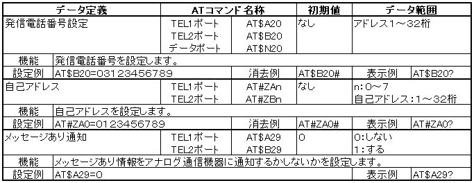 ATコマンド表は以下の通りです。