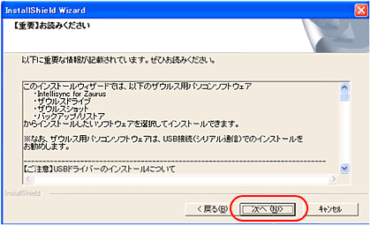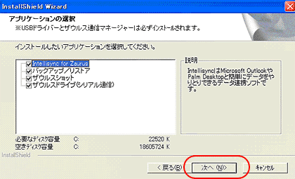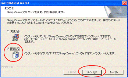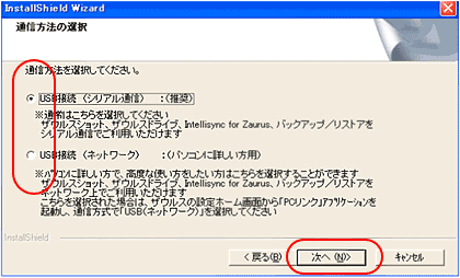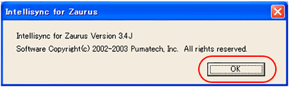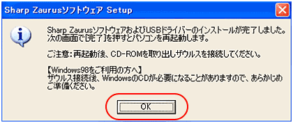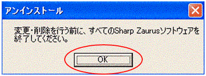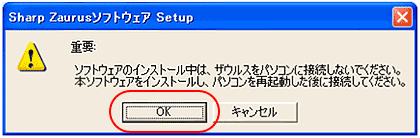 サザンクロスPDA SL-C750がパソコンと接続されていないことを確認し、「OK」をクリックしてください。 |