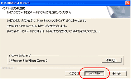 ダウンロードしたアップデート版ソフトウェアを実行すると展開先フォルダを入力する画面が表示されますので、適当なフォルダを指定して実行します。 |
