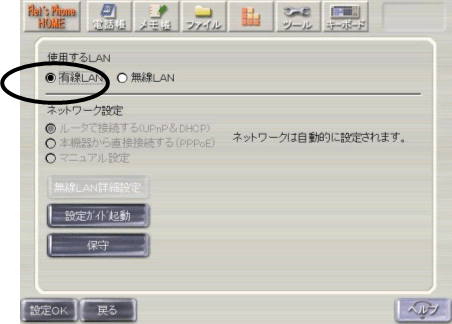 | 次の手順で無線LANから有線LANへの切り替えを行ってください。 |