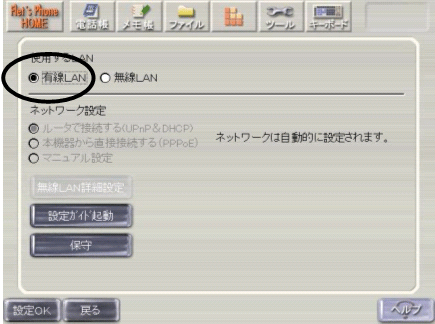| 「プロバイダのインターネットサービス」と「Lモードonフレッツ」の切り替えを行う場合は、一度、有線LANに切り替えてからサービスの設定を変更する必要があります。 |