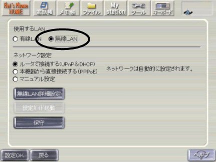 | 次の手順で「VP1000」を有線LANから無線LANへ切り替えてください。 |