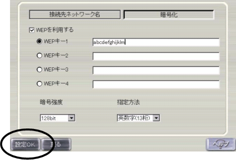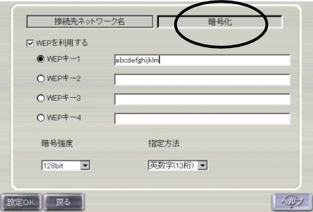 以下の設定では、アクセスポイントに設定した値と同じ値を設定する必要があります。