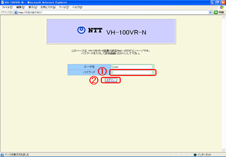 | 本商品の初期状態では、パスワードの設定は「user」になっています。パスワードを変更されている場合は変更後のパスワードを入力してください。 |