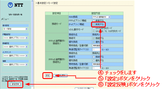 下記4、5、6の手順に従い、IPv6ブリッジ機能の設定を変更します。