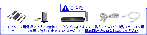 *移転を伴うアップグレードの場合には、回収キットをお送りいたしますので、レンタル機器と電源アダプタを一緒に梱包いただき発送してください。 |