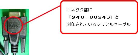 交換対象ケーブル:上記対象製品に同梱のシリアルケーブル/型式 940-0024D(コネクタ部に記載) |