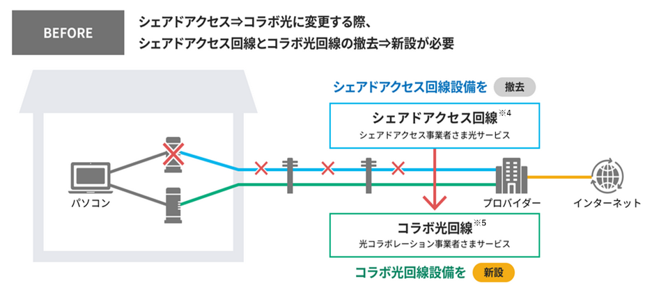 本スキームにおける施工イメージ(シェアドアクセス⇒コラボ光の場合)