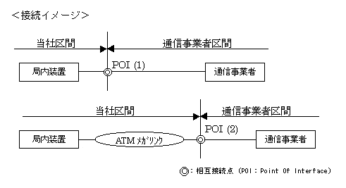 上位レイヤ仕様(IP over ATM仕様)は、POI(1)における上位レイヤ仕様(IP over ATM仕様)と同一である。 |