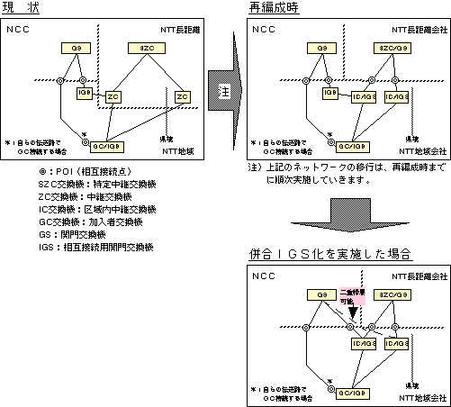 NCC回線をNTT長距離のZC交換機経由からNTT地域のIC交換機経由とする回線切替工事。 |