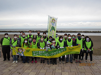 石川県の海岸線583キロメートルをきれいにする海岸愛護運動「クリーン・ビーチいしかわ」は1995年から30年近く継続されている環境保護活動です。2023年5月に開催された「クリーン・ビーチいしかわinはくさん」および「クリーン・ビーチいしかわinかなざわ」にNTT西日本北陸グループの社員とその家族の総勢112名が参加しました。