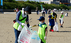 「クリーン・ビーチいしかわinかなざわ」では健民海浜公園に隣接する専光寺海岸を清掃し、漁網やロープ・プラスチックの破片などの漂着ごみなどを拾い集めました。