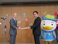 2017年12月3日、神戸市勤労会館での「ハートフルフェスタ2017」の開催にあわせて、兵庫県知事表彰の贈呈式が行われました。この表彰は、赤い羽根共同募金活動に対するNTT西日本兵庫グループの長年にわたる取り組みが評価され、「共同募金運動奉仕功労団体」として贈呈されたものです。式典では、神戸市中央区共同募金委員会会長より表彰状が手渡されました。