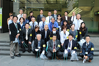 当日は、晴天の中、旧居留地内所在ビル(神戸中央、三宮、新神戸)に勤務するNTT兵庫グループ36名が参加し、タバコの吸い殻・ペットボトルなどを集めました。