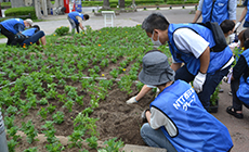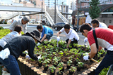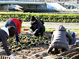 当日は、NTT西日本徳島グループの社員とその家族、OBの48名を含め、ボランティアや企業関係者の約300名が集まり、新町川沿いの藍場浜公園や国道沿いの花壇にマリーゴールド35,000株を植えました。