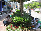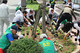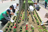 当日は晴天に恵まれ心地よい日差しの中、マリーゴールド、メランポジウム、サルビアなどの総計890株を1株ずつ丁寧に植えました。観光客をはじめ、通勤やお買い物でシンボルロードを利用されている皆さまに楽しんでもらいたいと思います。