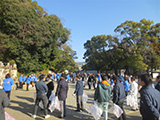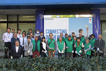 この取り組みはきれいな町で観光客を迎えようと高知市と高知市観光協会が50年以上前から毎年行っている取り組みで、今年は1月24日に開催されました。NTT西日本高知グループからはOB含め109名が参加し、中央公園と高知城周辺の2カ所の清掃活動を実施しました。