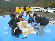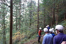 NTT西日本 高知支店では、高知県の取組みに賛同し、2008年に「協働の森づくりパートナーズ協定」を締結しています。「NTT光の森」と名付けられた協定森林において、間伐作業や管理に必要な作業道の整備等を行っています。2022年11月には、NTT西日本 高知支店グループの社員とその家族、退職者等総勢44名が「NTT光の森」交流活動に参加し、間伐作業や木工教室に取り組みました。