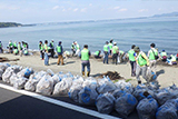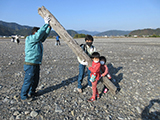 快晴で気温も上がる中、約1時間の清掃作業を終えるころには参加者は汗だくになりましたが、全員で力を合わせて流木、小枝、ごみ等をきれいに回収することができました。主催者は「きれいな川や海をどのようにしたら残していくことができるかを考えながらの行動が大切です」と話していました。