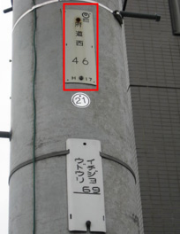 地上から3m位の高さに札がついていますので記載されている文字・数字をすべてご記入ください。